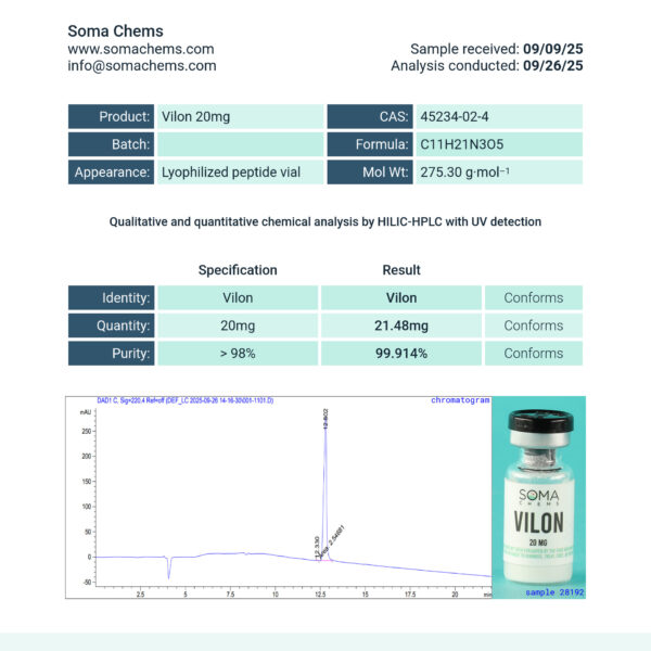 When sourcing VILON, look for companies that provide third-party testing results for their products. This verification confirms the peptide’s purity and identity, giving you confidence in what you’re buying. Reputable suppliers are transparent about their manufacturing standards and quality control processes.